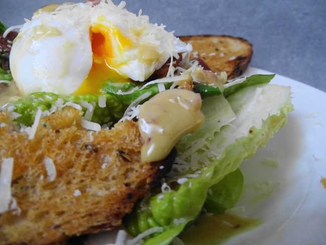 - Pop on the poached egg, & fried sourdough croutes, serve with a good grind of black pepper and grating of fresh Parmesan.