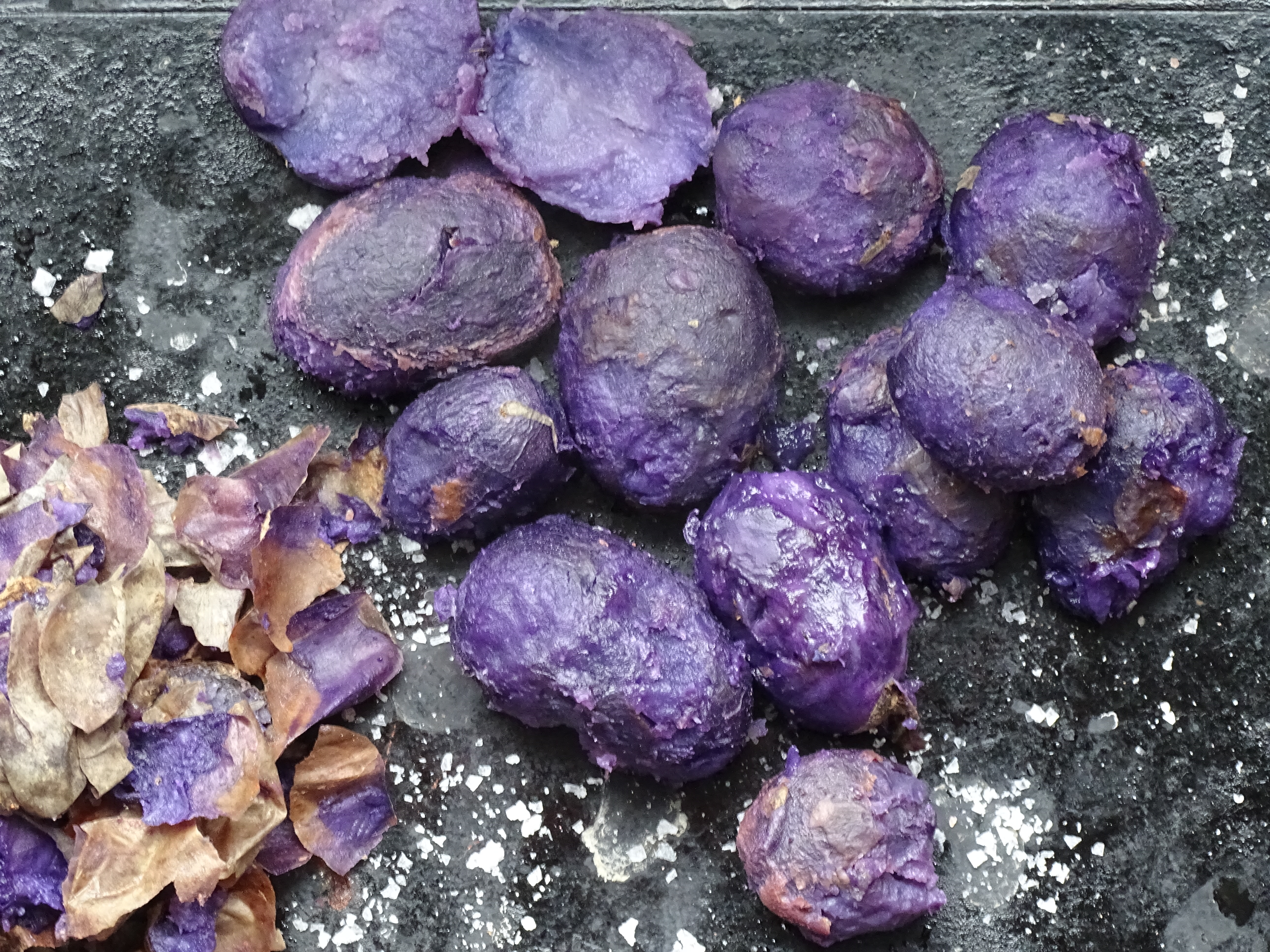 I have used two varieties of potato here, Sevilla which has a lovely buttery colour and flavour and the blue Anneliese with a slightly nutty taste for something a little different to try