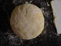 - Pat out into a square shape and divide dough into 4-5 pieces using a knife or dough scraper.