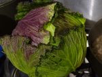 - Steam the cabbage leaves for 4- 5 min I used a pan of simmering water, popped the leaves into a sieve, then placed this on top of the water and placed the lid on top